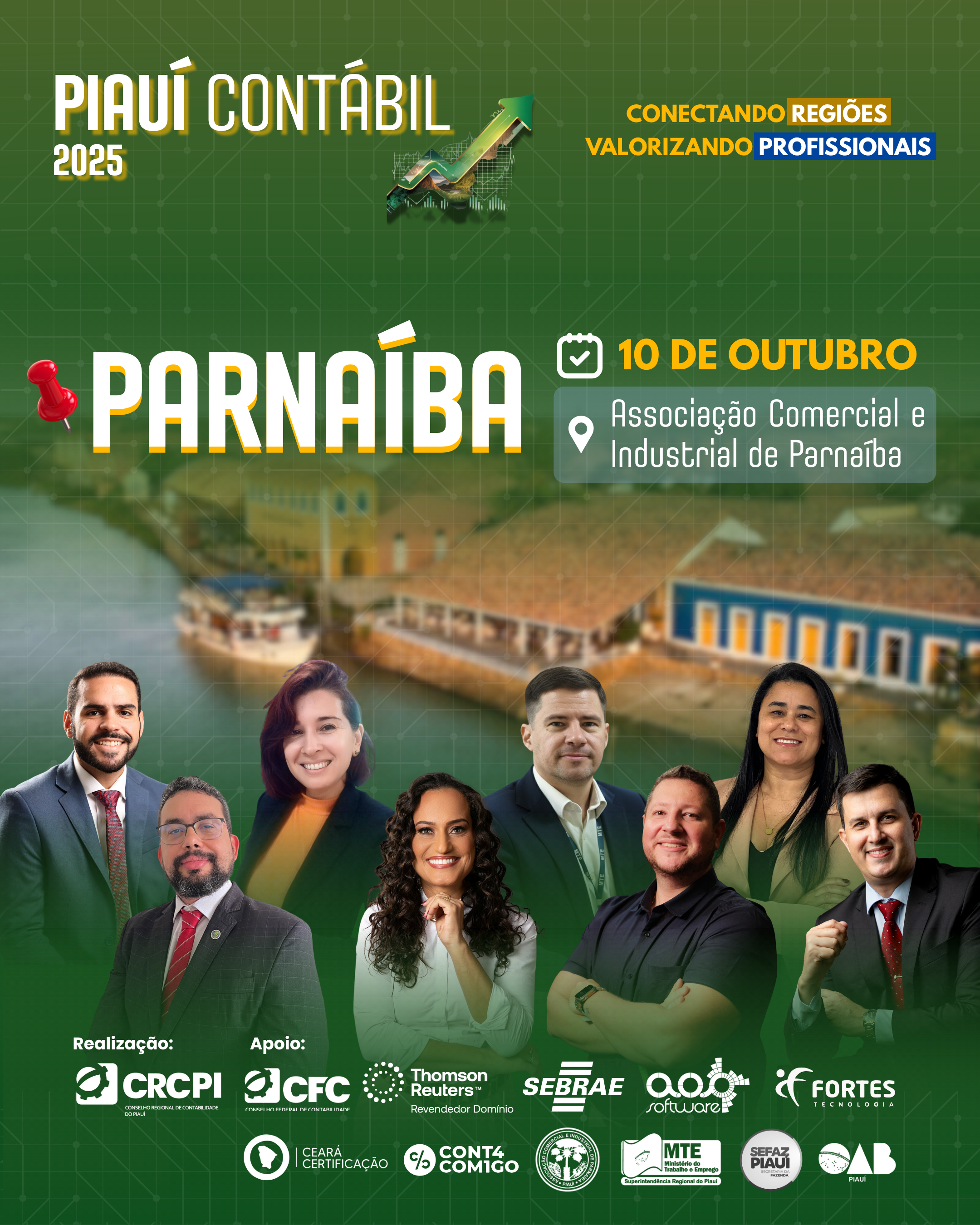 A cidade de Parnaíba recebe, no próximo dia 10 de outubro, o Piauí Contábil, evento itinerante do Conselho Regional de Contabilidade do Piauí (CRC/PI) que percorre diferentes regiões do estado com o tema “Conectando Regiões, Valorizando Profissionais”. O evento será realizado na Associação Comercial e Industrial de Parnaíba, localizada no Porto das Barcas, e reunirá profissionais, estudantes e autoridades em um dia de palestras, debates e oportunidades na feira de negócios.